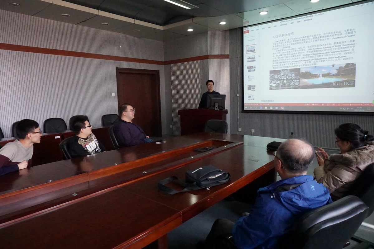 计算机学院曹英晖博士在计算机学院A515报告厅做了题目为“数值仿真与优化在光波导器件设计中的应用”的学术报告。报告主要介绍了曹英晖博士在美国访问学者期间的工作、生活经历,以及所取得的关于光波导器件数值仿真设计的研究结果。报告中,曹英晖博士首先介绍了中佛罗里达大学,外方合作导师Raj Mittra教授,以及访学期间的工作、生活情况,然后重介绍了其在访学期间所作的仿真计算方法研究工作,以及光子晶体耦合器和弯曲光波导的仿真优化设计工作。