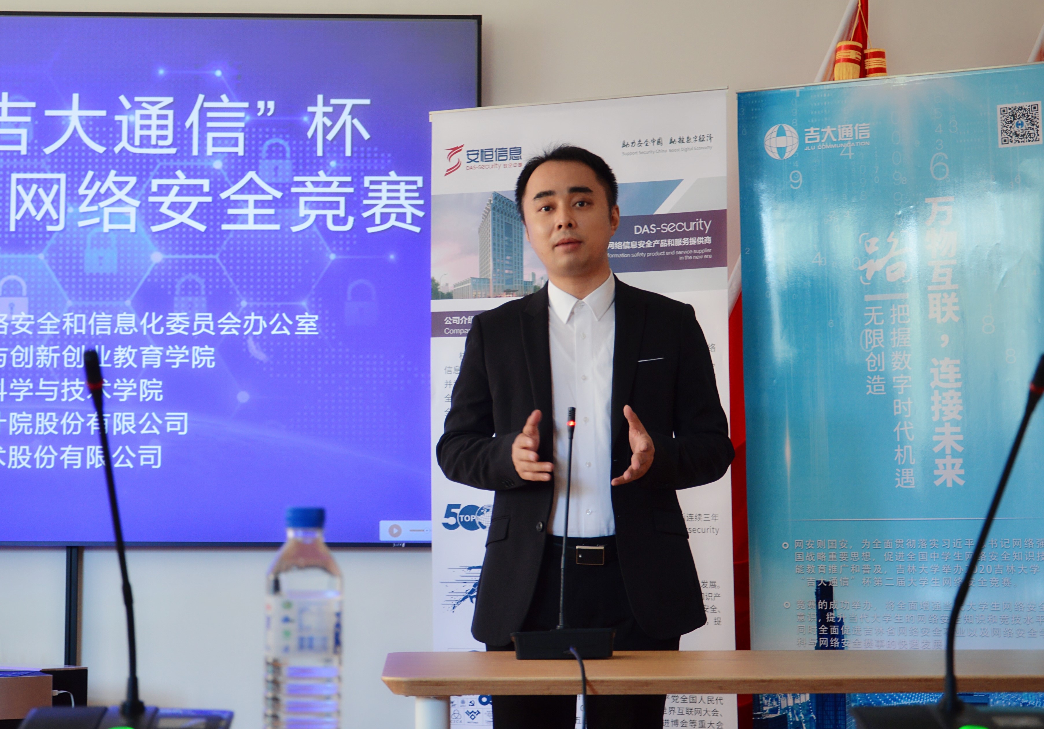 的网络安全学科发展,共同形成教育合力,为实现两个一百年奋斗目标提供动力,为实施网络强国战略贡献力量。随后,协办单位吉林吉大通信设计院股份有限公司于涛主任和技术支持单位杭州安恒信息技术股份有限公司东北区陈晖主任相继发言,祝贺竞赛圆满成功,并表示会继续加大对麻豆tv