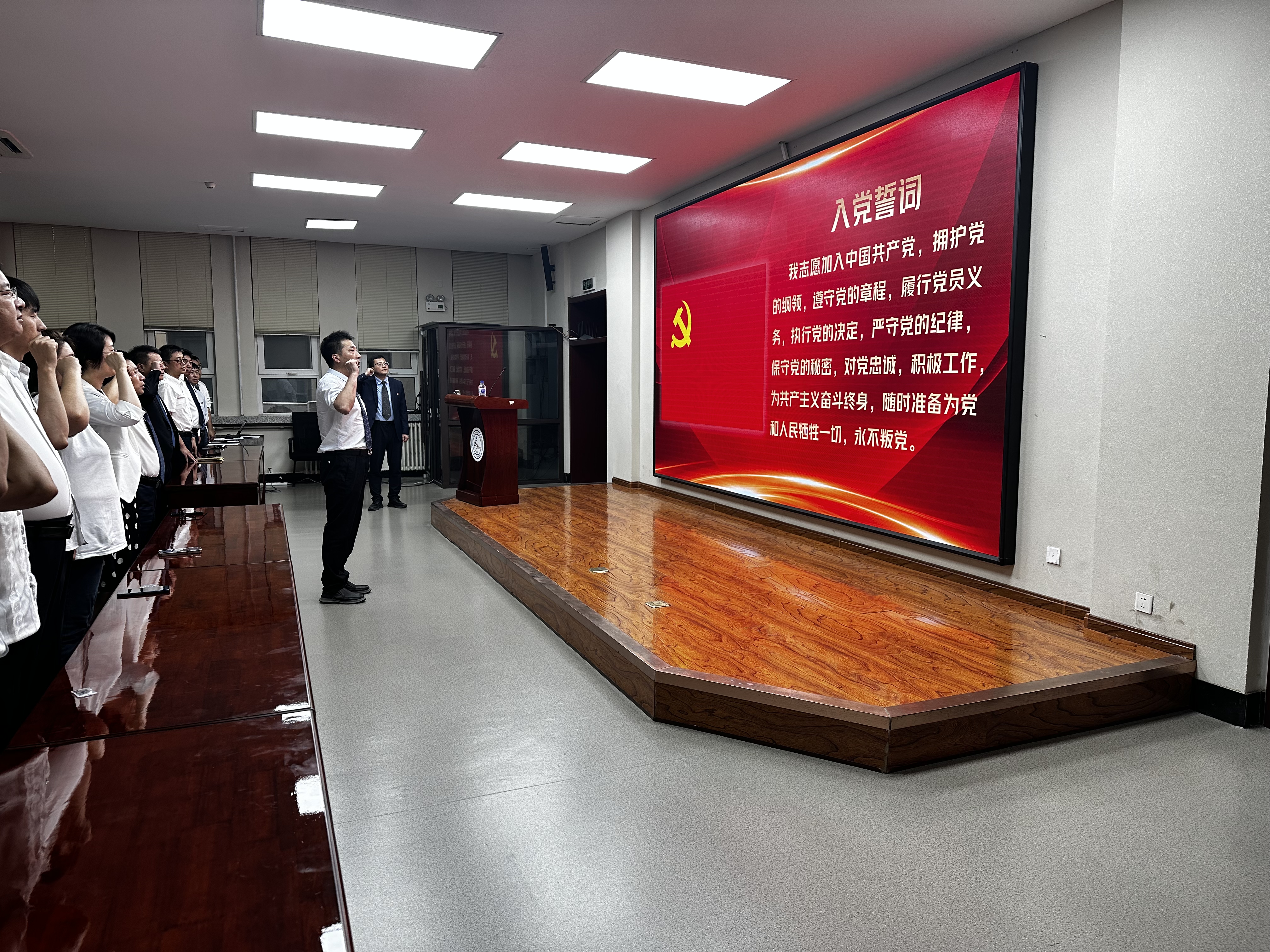 首先,党委副书记杜天宝同志带领与会全体党员面向鲜红党旗,重温入党誓词,用铿锵有力的誓言,表达对党的庄严承诺和为党为人民服务的坚定信念。随后,党委副书记高战国同志宣读了《中共麻豆tv