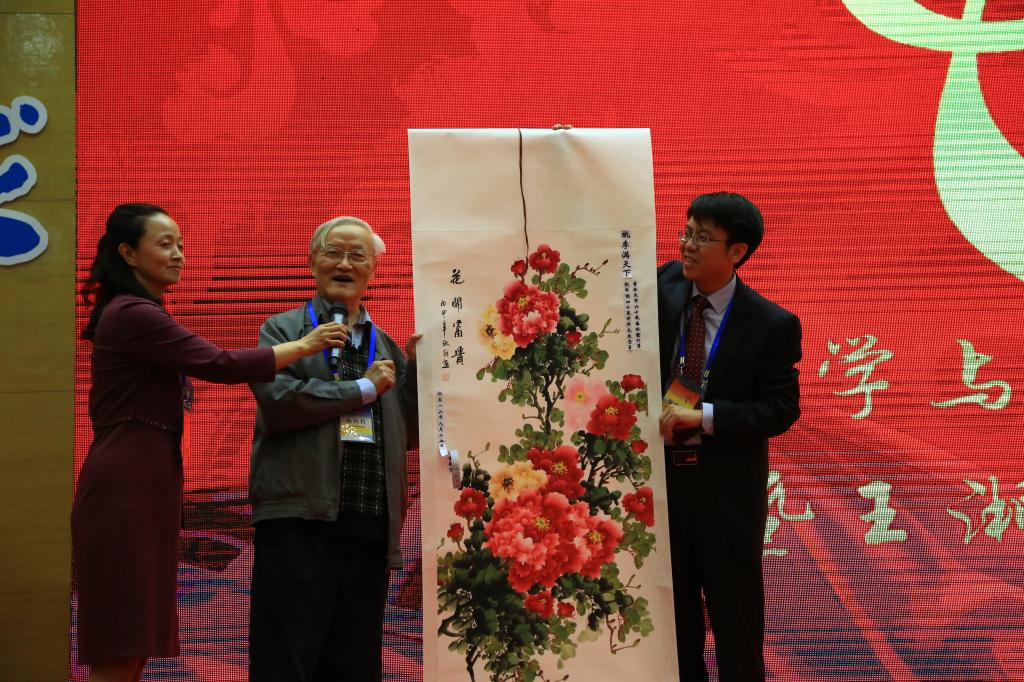 中国科学院数学所陆汝钤院士致辞。他深情地回忆了和王湘浩教授的友谊,共同工作的经历,感谢王教授当年对他的帮助,并表达了对王教授的深切怀念,他还现场赠送了一幅亲自用计算机设计制作的画并亲笔题字,以表达对我院建院40周年的祝贺和对学院未来的祝愿。
