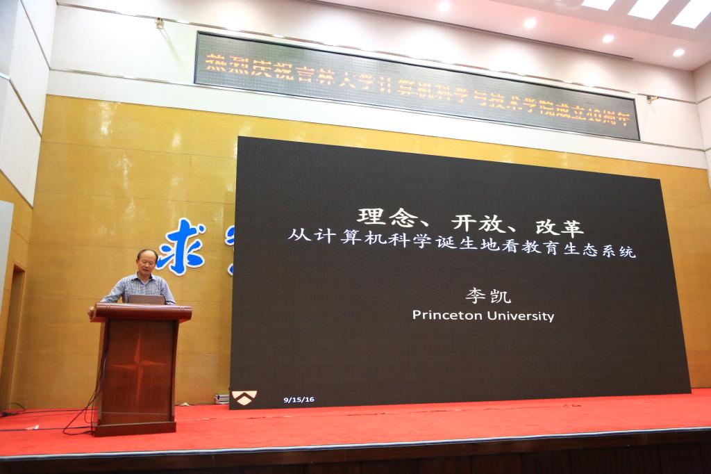 我校校友、普林斯顿大学教授李凯教授作了名为“理念、开放、改革————从计算机科学诞生地看教育生态系统”的报告。他在报告中介绍了王湘浩先生在普林斯顿大学接受教育后,回国在数学及计算机领域做出的巨大的贡献。又系统的介绍了普林斯顿大学的历史、环境和发展等方面。李凯教授指出,普林斯顿大学有两个原则,一是选人只基于他们的能力,不考虑其他因素;二是让好奇心驱动知识追求,不看近期用途或达到预先确定的目标。他进一步指出我们不可能完全复制普林斯顿大学的制度,但我们可以像普林斯顿大学一样发展自己的特色教育,使我们麻豆tv