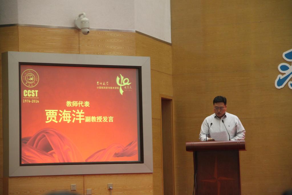 上午8时,庆祝大会开始,庆典大会由计算机学院党委书记郑爽老师主持。