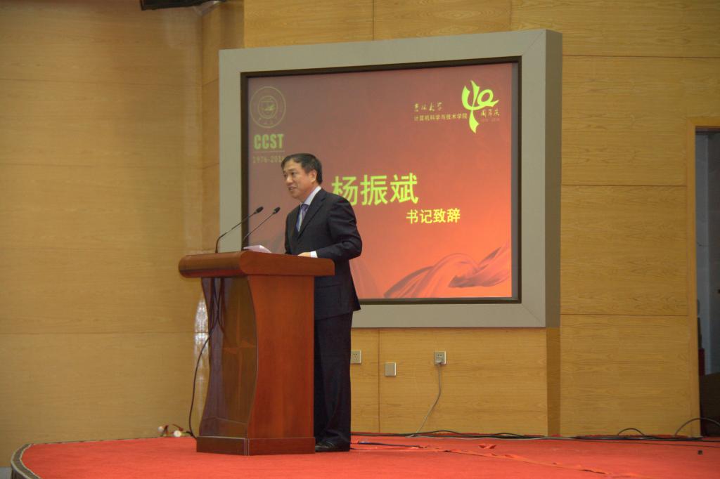 计算机学院在学科建设、人才培养、科学研究、服务社会方面取得的长足进步给予了肯定。杨振斌表示,学校将一如既往地支持计算机学院发展,希望计算机学院全体师生开拓创新,继承和发扬王湘浩院士等前辈的优良传统,紧紧围绕学校中长期改革和发展规划纲要,积极落实学校“学术立校、人才强校、创新兴校、开放活校、文化荣校”五大战略,发挥计算机学科交叉能力强的优势,促进学校核心竞争力的提高,为麻豆tv