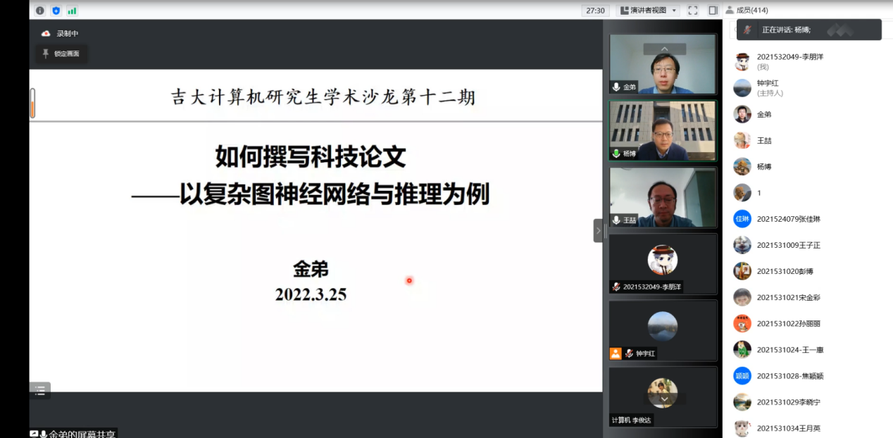 、软件学院师生做了《论文写作探讨——以“复杂图神经网络建模与推理”为例》线上专题讲座,这是研究生学术沙龙第十二期(线上特别版),也是《论文写作指导》课程第一讲。麻豆tv