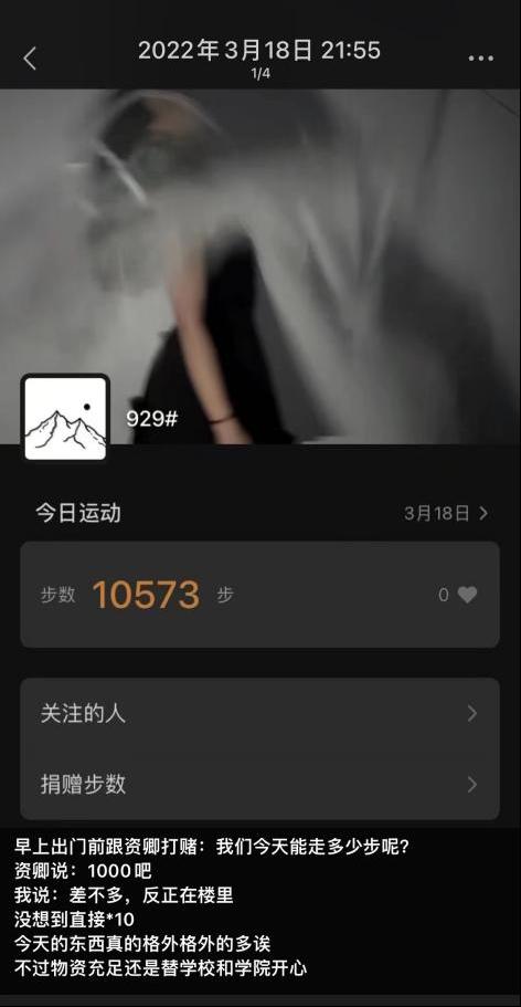 一直参与志愿活动的谷殿月同学对同学们的奉献精神记忆深刻,她回忆道:在封寝管控的初期,学校的防疫物资还没有发到志愿者手中,让我印象深刻的是,群里有很多同学主动说:我这里有n95口罩,先拿给志愿者用。男寝志愿者口罩不够用,先从我们女寝匀一些过去吧。在这些话中我看到的是,困难面前的互相温暖以及所有同学们对志愿者的支持和保护,很多没能有机会加入志愿者的队伍的同学,也都在用各种方式参与进来。那个时候我就觉得,疫情真的很快就会被打败。