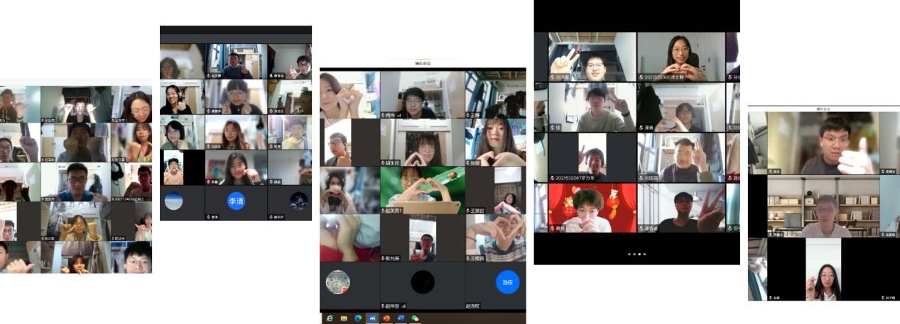 整个班会环节包括摇摆时钟、情绪安慰剂、不烦躁的理由、我的一天、见证彼此和我的收获,这些环节以小游戏的形式引导同学们关注自身情绪变化,同时发现自己或者他人遇到的心理问题,大家彼此排忧解难,共享自己消除负面情绪的“小秘诀”。在这场主题班会中,同学们压抑的负面情绪也都随着欢声笑语消失不见了。最后同学们在屏幕前留下了一张张笑靥如花的合影,见证了“心灵沟通”主题班会的圆满举办。
