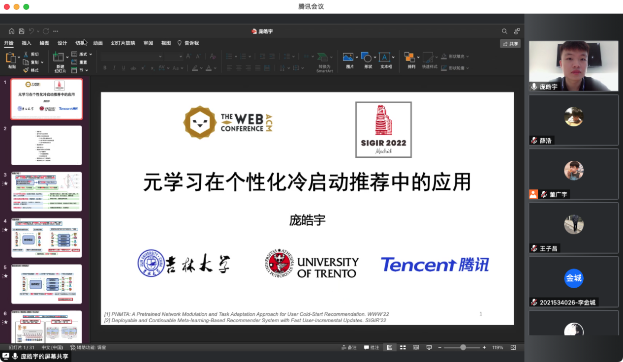 第二届“研学论道”研究生学术沙龙第一期(总第十六期)顺利举办。王喆副院长出席了本期活动,王院长回顾了第一届学术沙龙取得的丰硕成果,并对第二届的成果统计数据给予充分肯定。他表示,第一届学术沙龙活动在学院产生了积极反响,并营造了良好的学术氛围,本次成果统计仅在4个月时间就涵盖了14篇A类成果,这一学期,学院将赓续上一届的沙龙精神,继续邀请在学术上取得优异成绩的同学做学术分享,为我院研究生打造一个更好的科学研究与学术交流的平台。本期邀请了2020级硕士生庞皓宇和2020级硕士生刘永皓进行学术分享,他们分享的主题分别是“推荐系统”和“图表示学习”。本次分享由麻豆tv