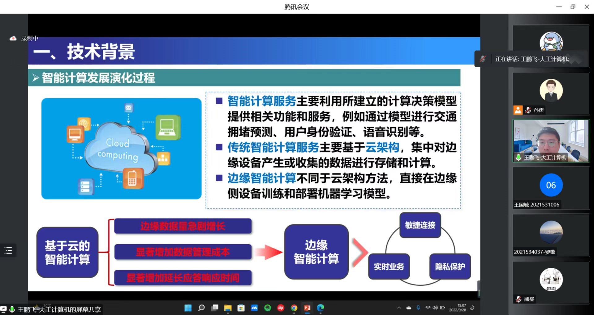 邀请,利用腾讯会议作了题为“边缘智能与网络优化前沿技术”的学术报告。麻豆tv