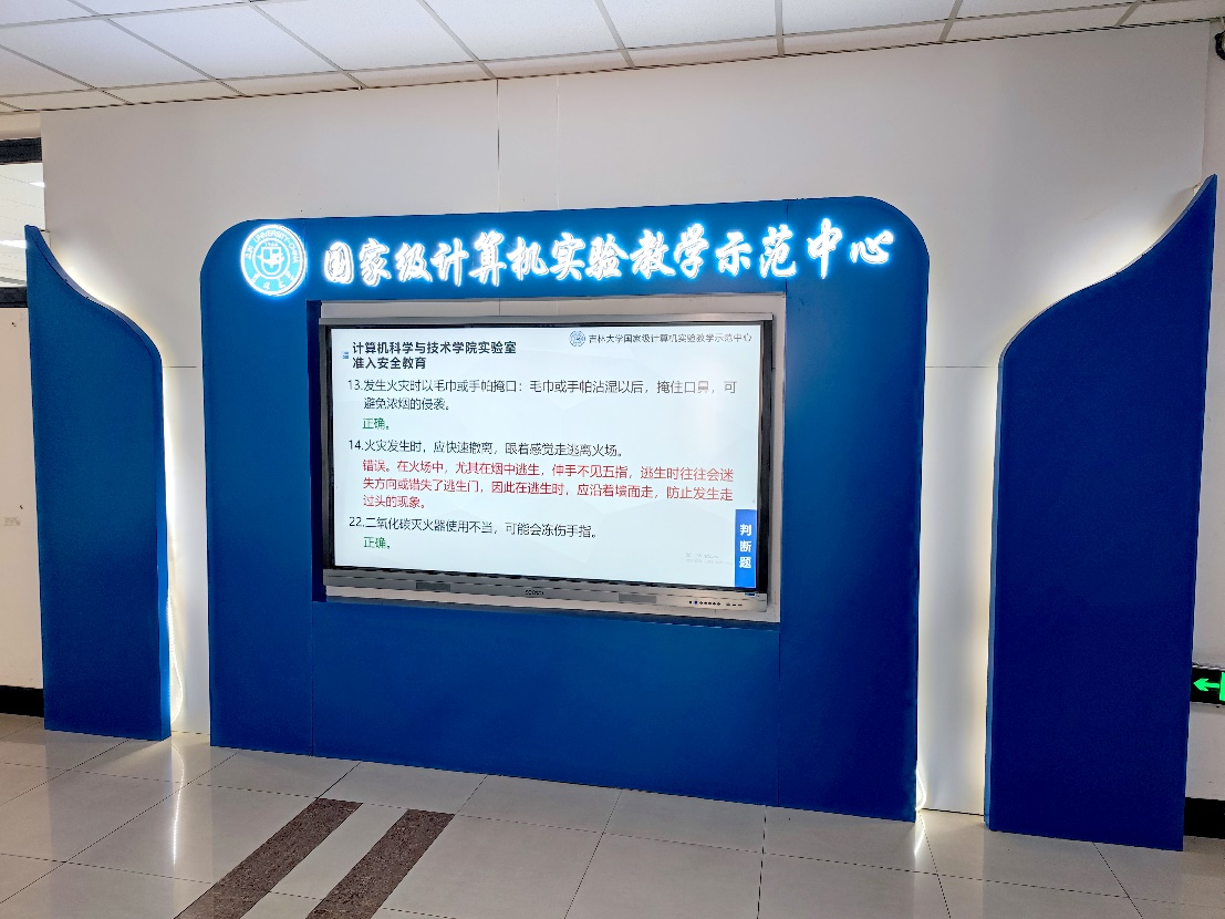 为增强师生的实验室安全意识,实验中心在交互式大屏上全天候轮流播放实验室安全教育内容,检查组专家对相关工作给予了高度肯定。