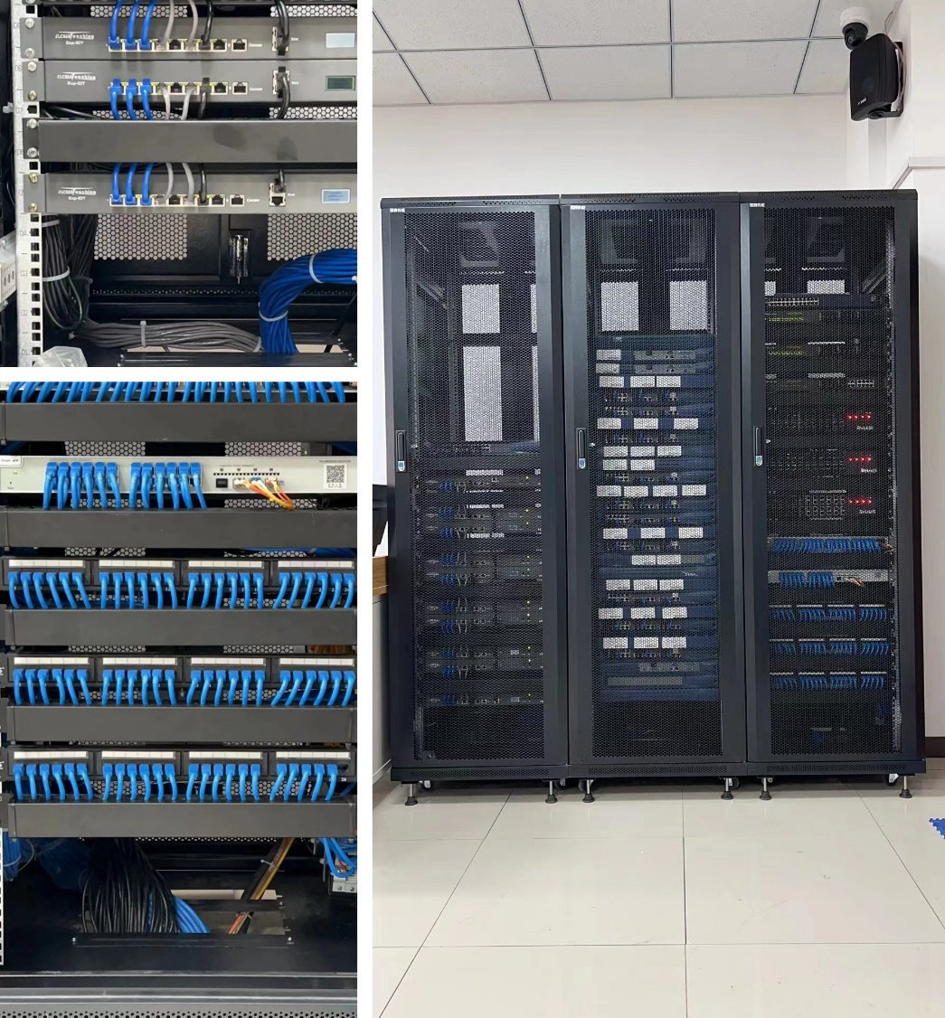 在检查过程中,检查组发现网络与安全实验室存在机柜布线混乱的问题,学院在得到检查组的反馈意见后高度重视,在分析问题原因后研究制定了整改方案。网络与安全实验室自2006年建成至今,经过了数轮课程改革和实验设备的更新迭代,由于网络机柜数量的不断增加以及机柜中设备和布线的不断调整,造成了机柜规格不统一和布线混乱的问题。针对机柜老旧损坏、规格不统一的问题,学院投资重新购买了6台标准机柜,对原有机柜进行了更换。针对网络布线混乱问题,实验中心联合相关实验课程教师和实验设备供应商,共同对十多年来数次设备迭代产生的混乱线路进行了分析梳理,并进行了网络优化和重新布线,使得多年积累的网络问题得到了彻底的解决,师生的课堂体验得到了显著提升。