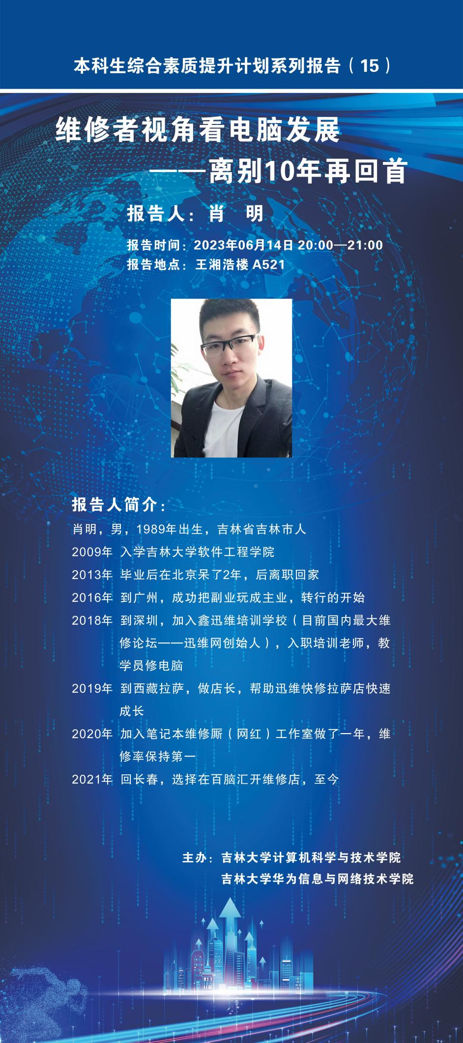 中心校区王湘浩楼A521报告厅作了题为“维修者视角看电脑发展——离别10年再回首”的专场讲座,也是本科生综合素质提升计划系列报告第15场。讲座由麻豆tv
