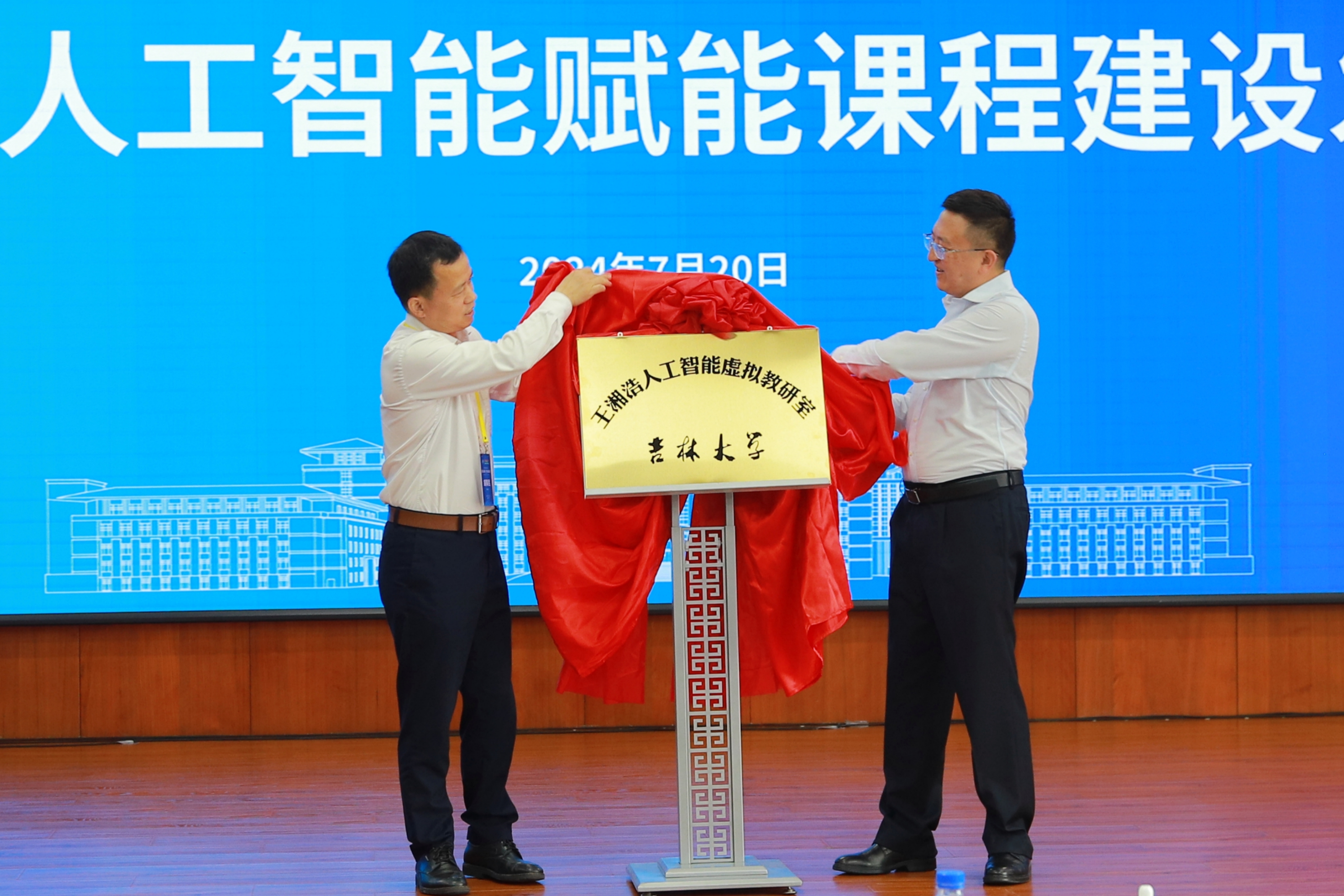以王湘浩院士命名,成立了“王湘浩人工智能虚拟教研室”。在全体人员的见证下,蔡立东和胡事民共同为王湘浩人工智能虚拟教研室揭牌。
