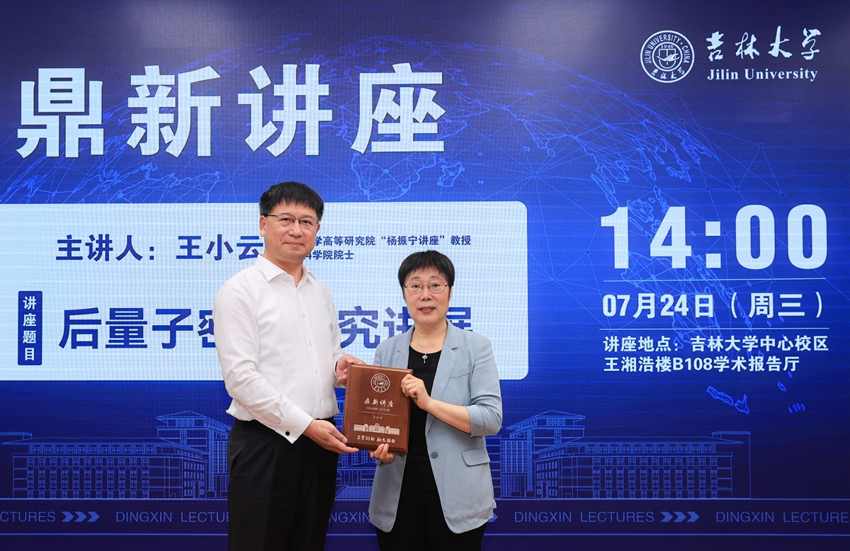 校长张希出席讲座并为王小云院士颁发“鼎新讲座纪念牌”。