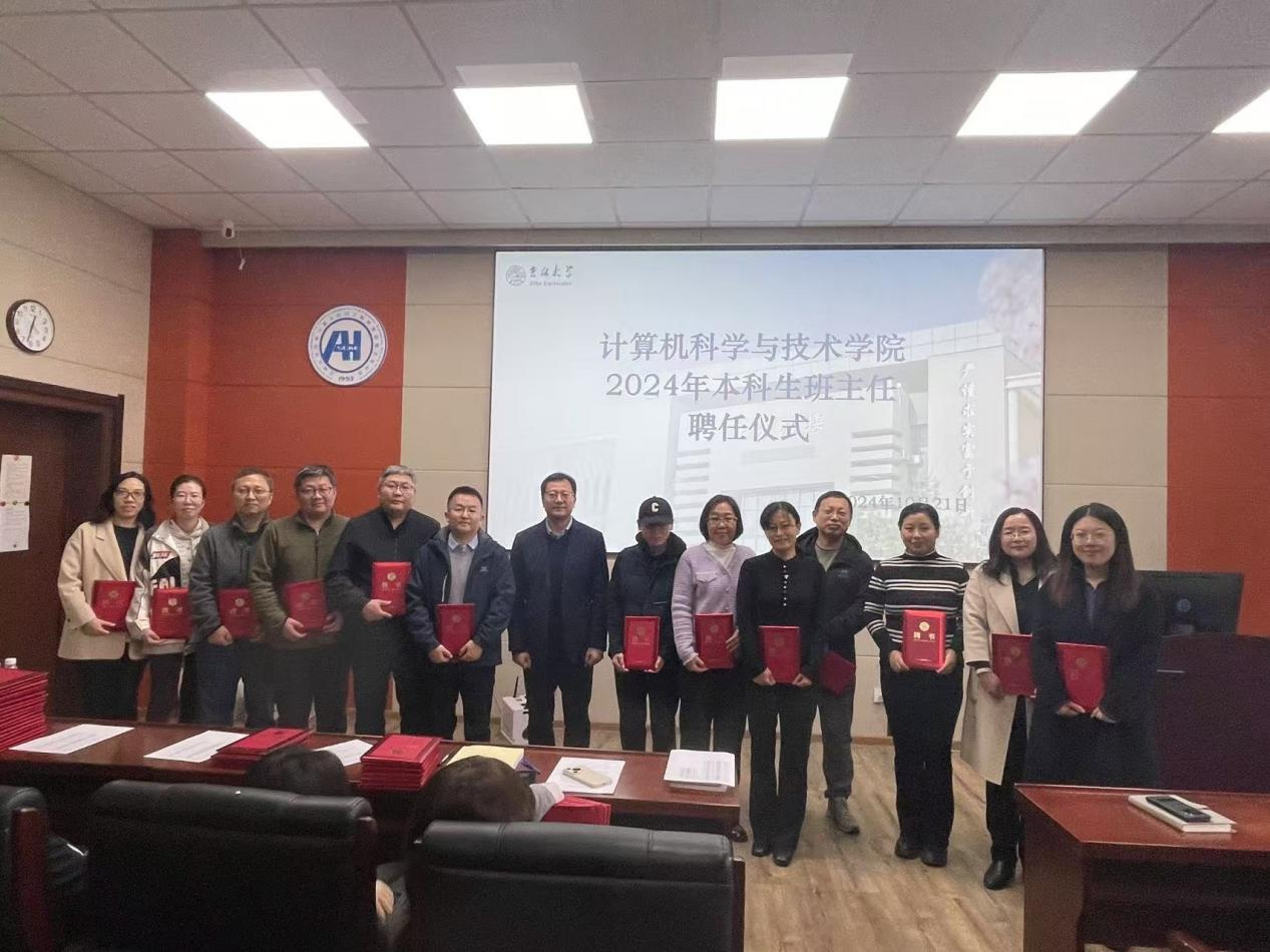 在王湘浩楼A521报告厅召开2024年本科生班主任工作会议。会议开始后,杨博院长首先为50余名教师颁发本科生班主任聘书并合影留念。杨博院长发表讲话,代表学院对新聘任的本科生班主任表达了感谢,强调学校和学院对本科生班主任工作高度重视,要求各位老师认真学习相关文件,履行好工作职责,为学生成长成才提供强大助力,尤其加强对本科生的学业指导、专业教育引导、职业生涯规划、班级学风管理和科研能力训练指导,同时学院将对班主任工作提供全方位的支持。