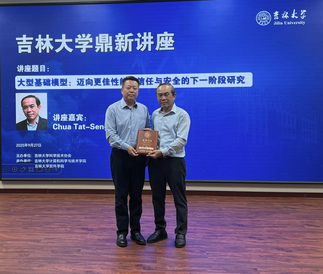 党委书记宫皓宇出席讲座并为Chua Tat-Seng院士颁发“鼎新讲座纪念牌”。