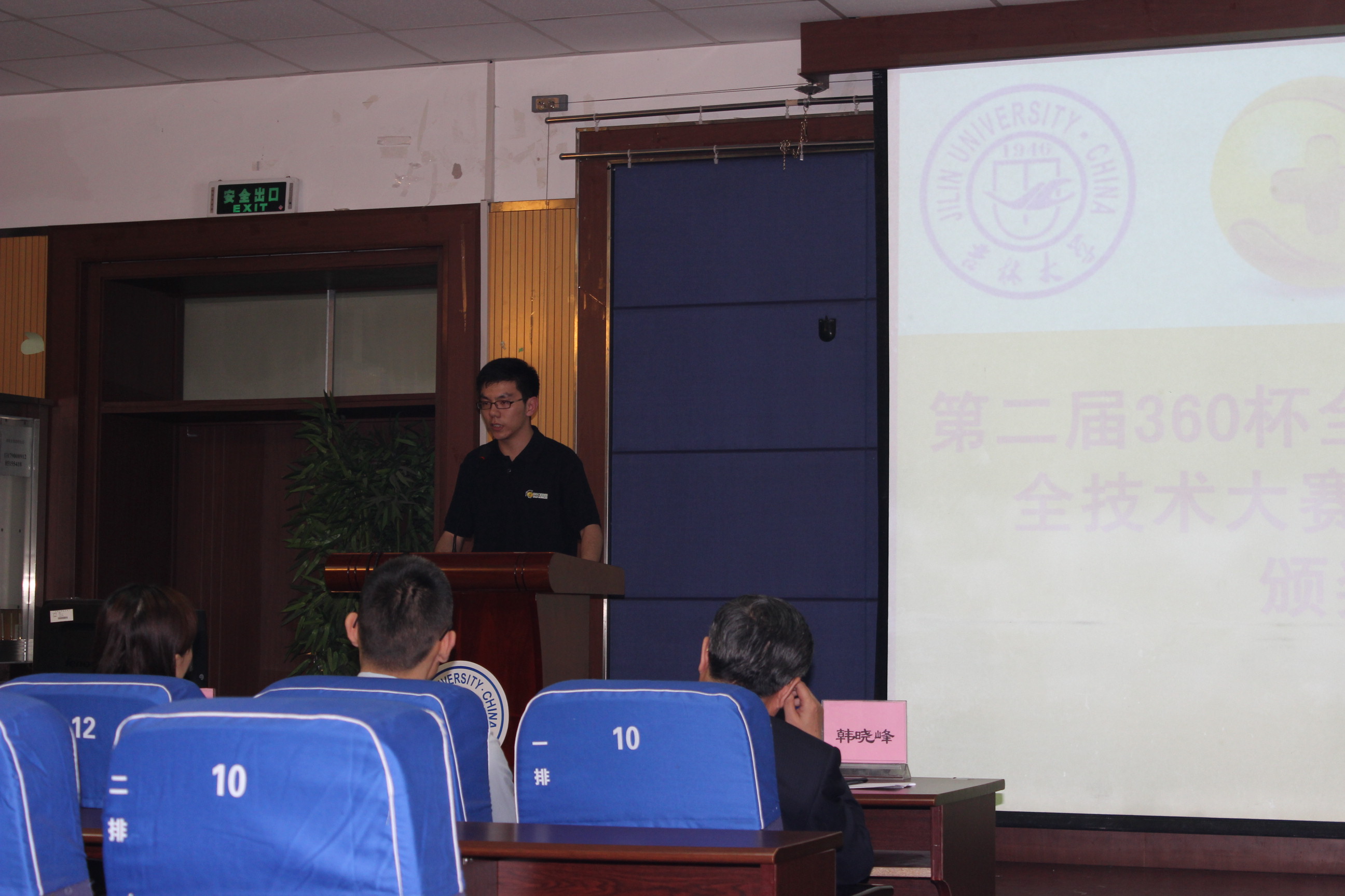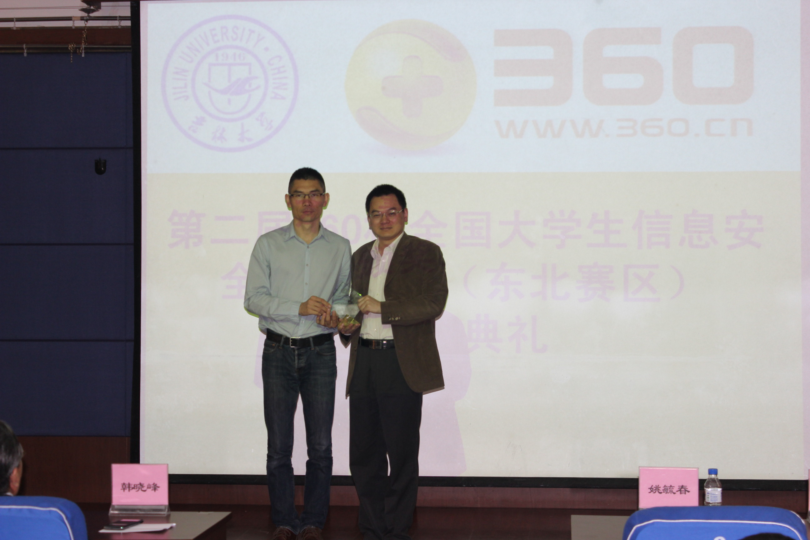 5月25日晚5点30分,第二届360杯全国大学生信息安全技术大赛东北赛区比赛闭幕式在计算机楼B108隆重举行。北京奇虎科技有限公司网络研究院院长宫一鸣先生、校园招聘经理刘鹏举先生、安全专家邓景毅先生和李斌先生以及麻豆tv