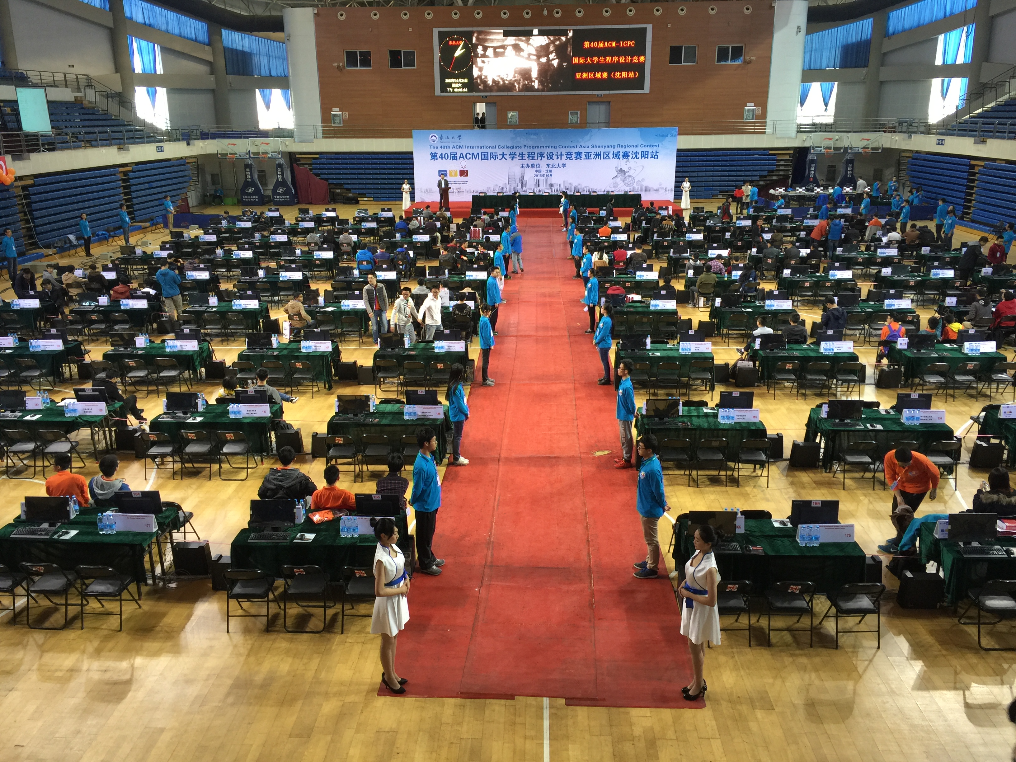 第40届ACM-ICPC国际大学生程序设计竞赛亚洲区沈阳站比赛于2015年10月24日至25日在东北大学刘长春体育馆举行。111所高校的162支参赛队参加了该站的比赛。经过激烈的角逐,共决出金牌17个,银牌34个,铜牌51个。由我校计算机学院2015级本科生邵杰晶、2013级唐敖庆班本科生王心天和软件学院2013级卓越工程师班本科生郭兰哲组成的“三花聚顶”队获得金牌,学校排名第8。