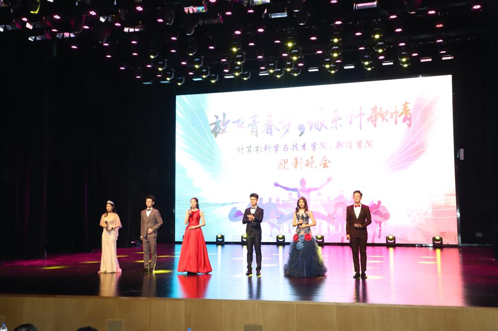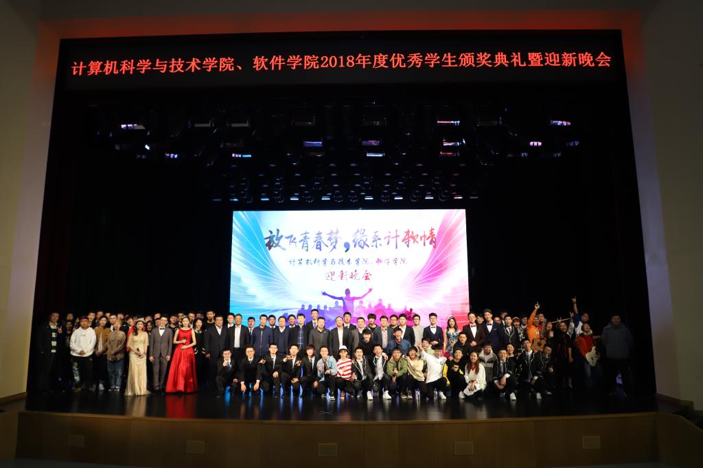 、软件学院在鼎新大讲堂联合举办了2018年度优秀学生颁奖典礼暨“放飞青春梦,缘系计软情”迎新晚会。出席晚会的嘉宾有学生工作部部长张国兴老师,研究生工作部副部长赵玥老师,教务处处长刘鹤老师,保卫处处长宫皓宇老师,学生就业创业指导与服务中心主任钟新老师,校团委书记代磊老师,麻豆tv