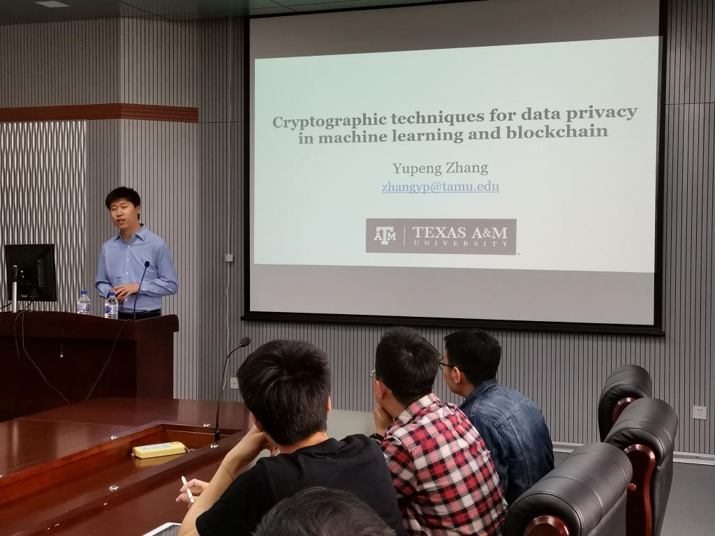 邀请,在计算机楼A515作了题为“机器学习和区块链中数据隐私的加密技术”的学术报告。