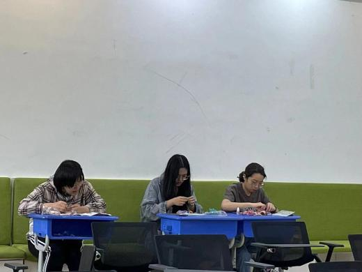 在各单位主办方的联络下,参与与未参与线上环节的各学院同学们相聚敬信教学楼团体辅导室。明信片被写满充满陌生人善意的祝福语,一张张地缓慢地落在收纳盒里;积木花、团扇等手工品在相知相识的过程中被完成,一件件都见证烦恼的倾诉、友谊的建立。
