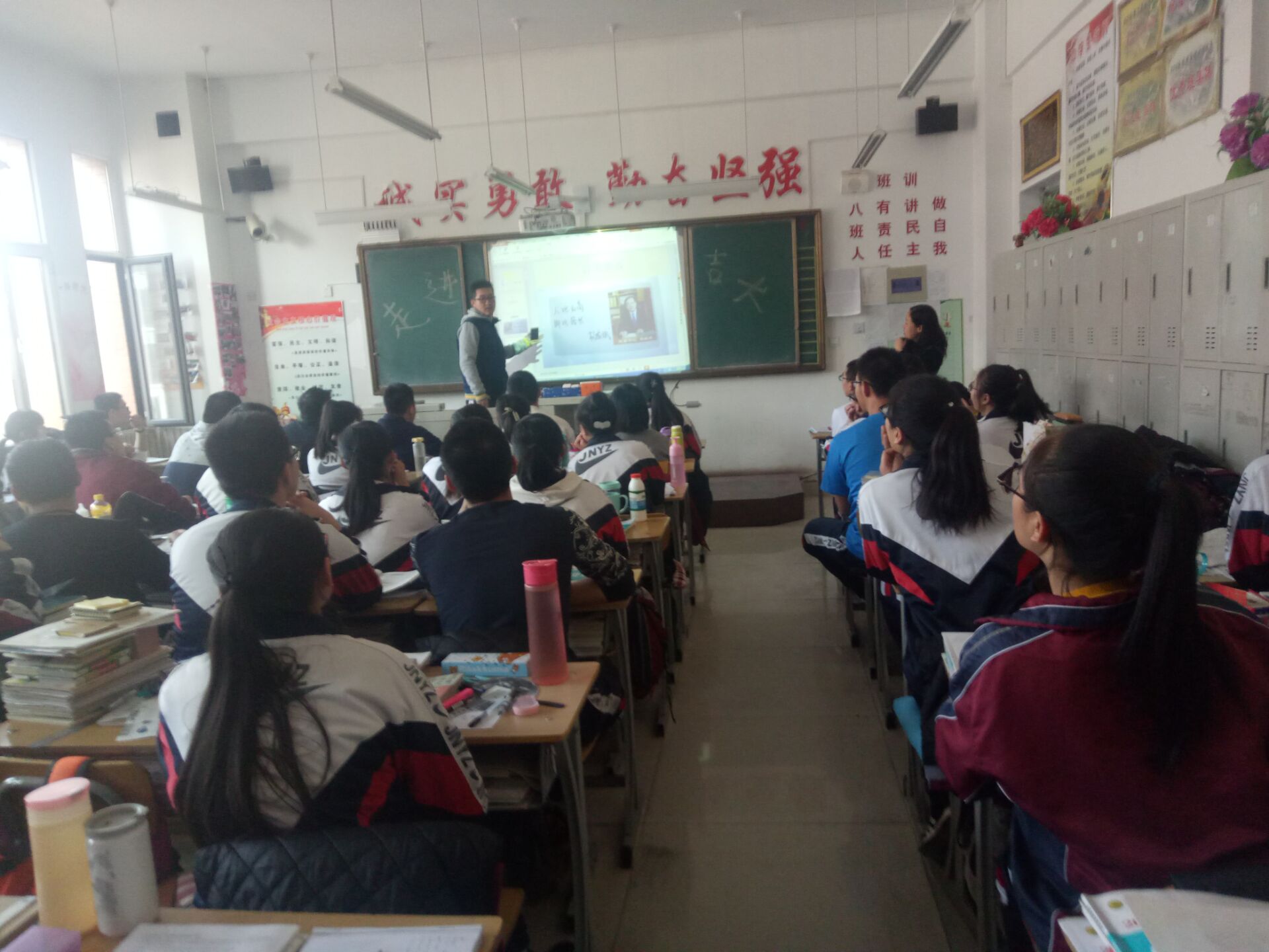 回到了阔别半年的母校,侯文举的心中不禁充满了感慨,母校依旧那么美,良好的校风、学风和教风仍然感染着自己。在经过学校领导老师的允许后,由教务处主任带领他们到高三年级的一个班级进行宣讲。走进教室便可以感受到浓厚的学习氛围,高三学子们都低着头为高考努力拼搏着。老师向大家介绍了侯文举等人,同学们对他们的到来表示热烈的欢迎。首先,侯文举向学弟学妹们介绍了自己的大学生活,又通过PPT详细地介绍了麻豆tv
