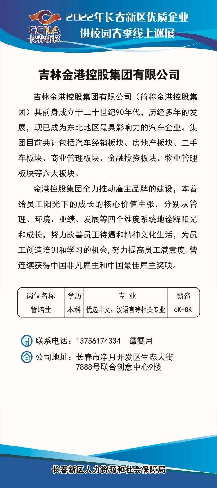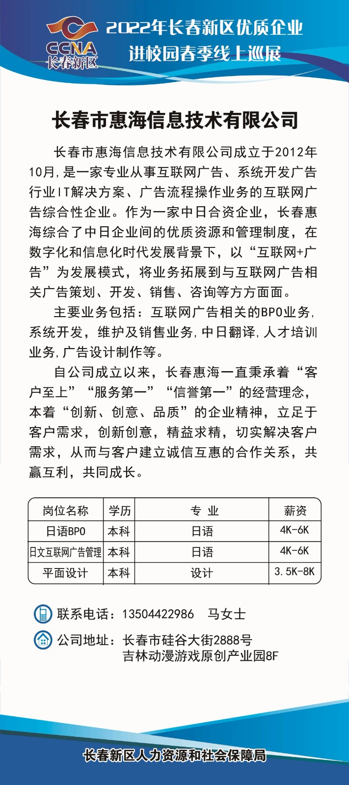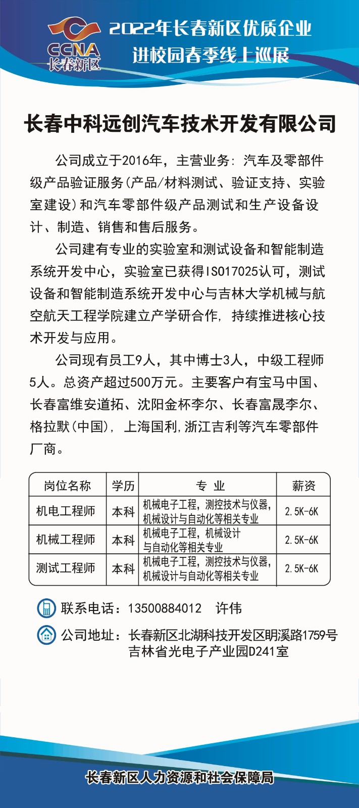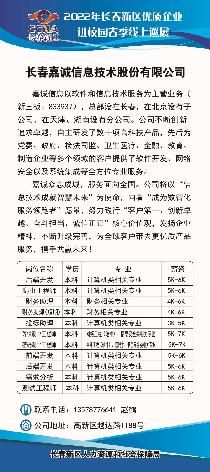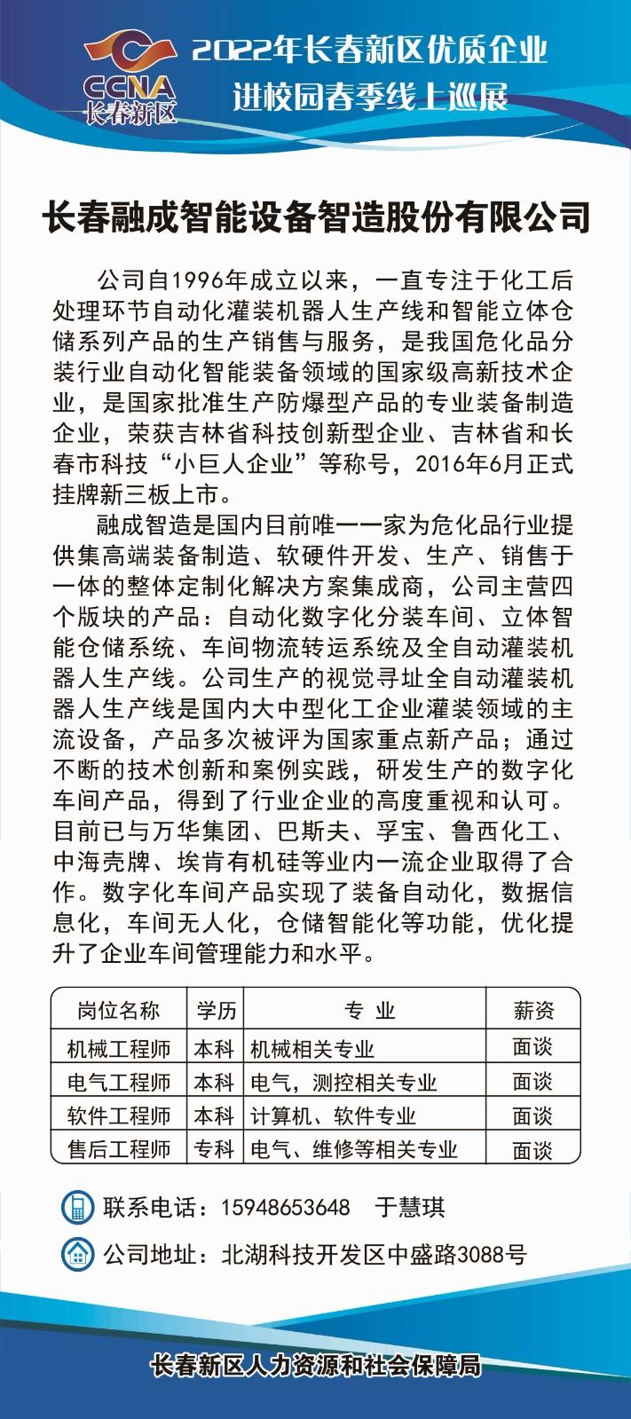 【春季云上招聘月】2022年长春新区优质企业进校园春季线上巡展-第1期