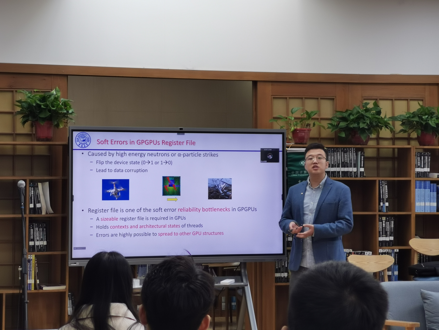 杨院长致辞结束后,活动进行到第二项,本期沙龙的两位讲者岳恒山和尚龙康分别就自己的科研成果作了报告,并在会后与同学们开展了热烈的学术问答与科研经验的交流。岳恒山博士说到,我们在进行学术研究时首先要找到边界,要多看高水平论文,优先选择高质量会议的论文,或者领域内专有会议的论文。通过两位讲者的分享,同学们不仅了解了他们所研究的内容,也学到了自己应该如何做研究的经验。